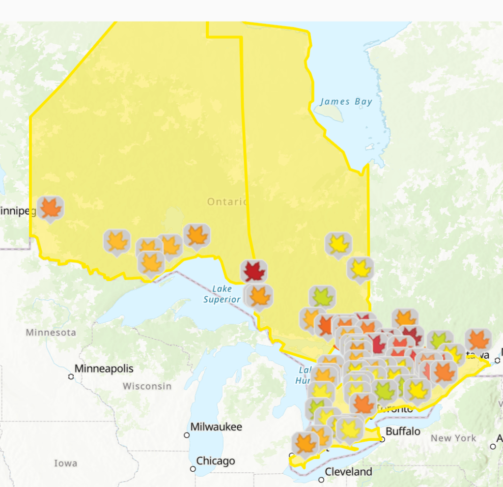 - Ontario Parks – This is the official Ontario Parks fall color tracker. It provides real-time reports on leaf color changes and peak viewing times across all provincial parks in Ontario. The site includes dominant colors, leaf fall percentages, and recommended viewing spots for each park. It’s a go-to resource for “leaf peepers” in the region..