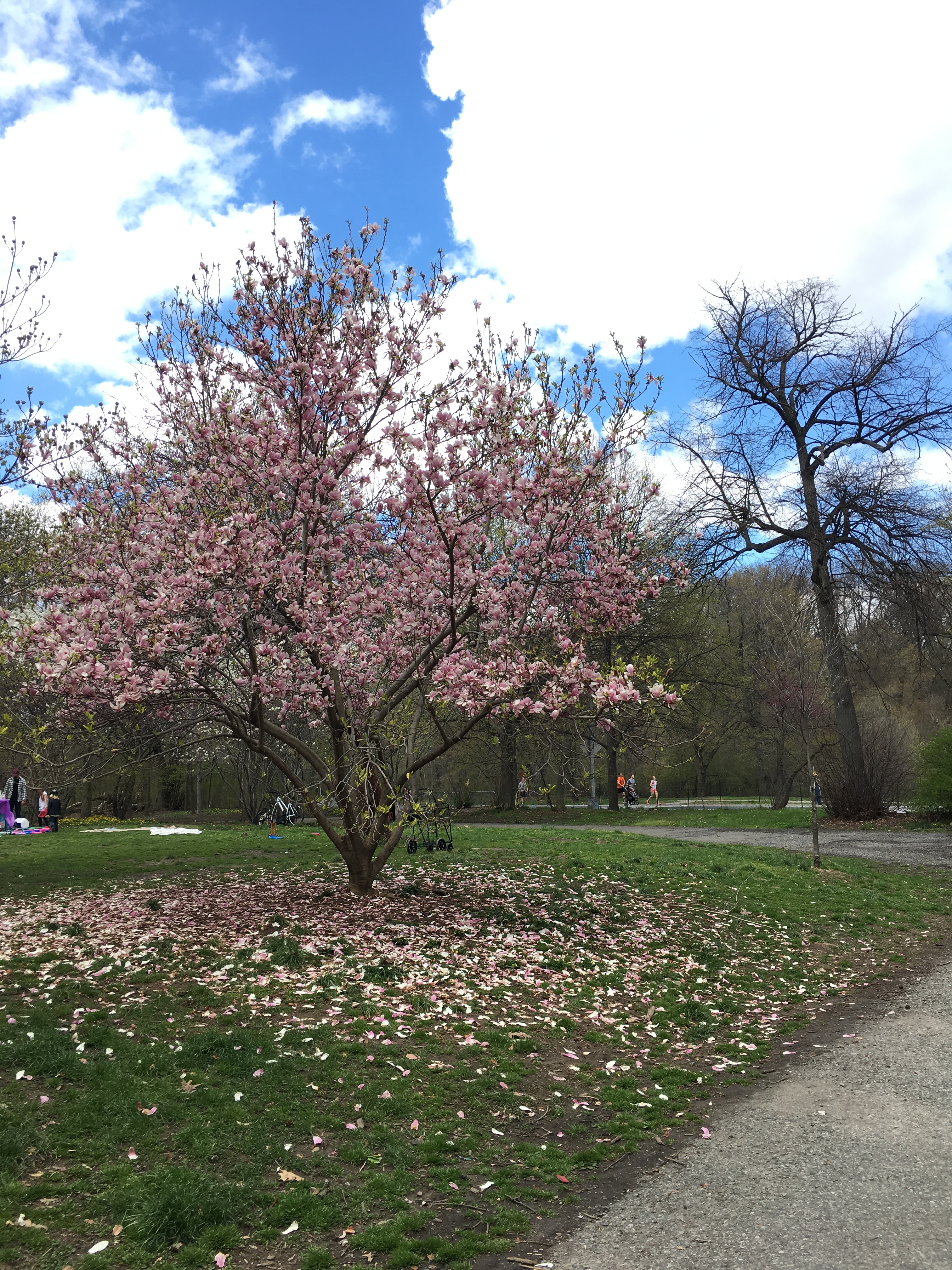 In New York City, Saucer Magnolias are mostly common in private gardens. Some placed in the front and some in the back yards. Unfortunately, it is rare to find them as street trees. Other Magnolia shrubs are common in parks around the five boroughs and even in some parts of Park Avenue.